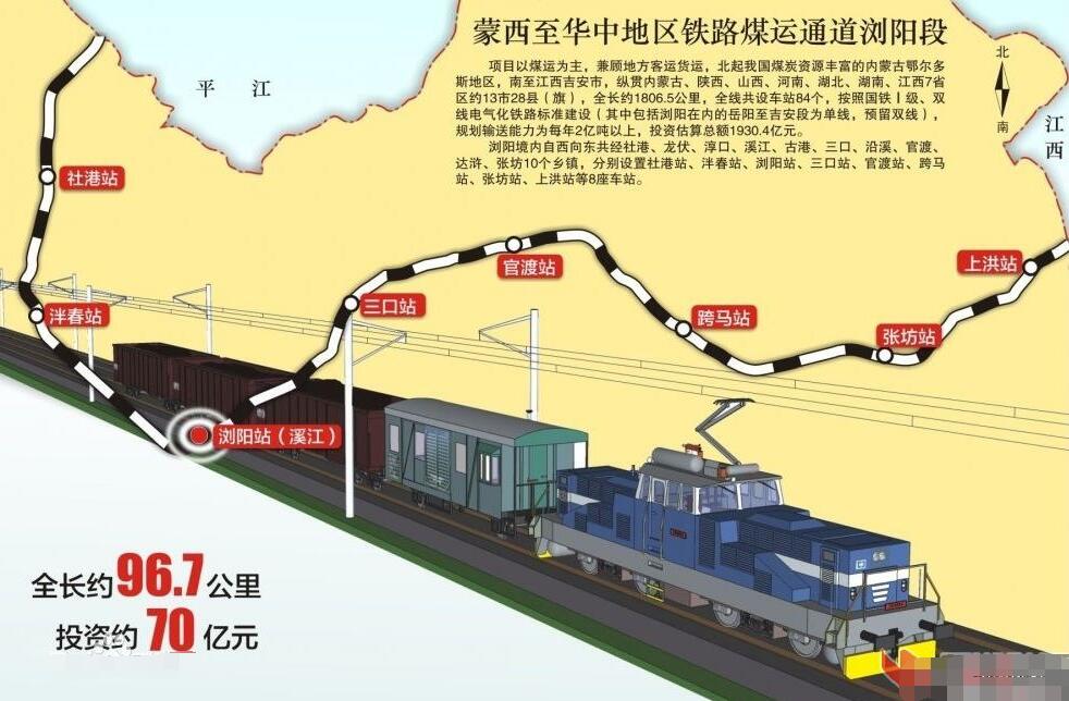 蒙華鐵路是國內最長運煤專線——蒙西到華中煤運鐵路,北起內蒙古浩勒報吉站,終點到達江西省吉安市,線路全長1837公里,規(guī)劃設計輸送能力為2億噸/年。