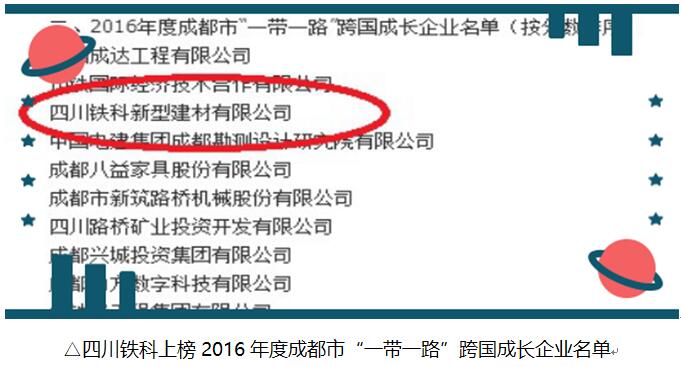 【鐵科榮耀】 入選2016年度成都市“一帶一路”跨國成長企業(yè)