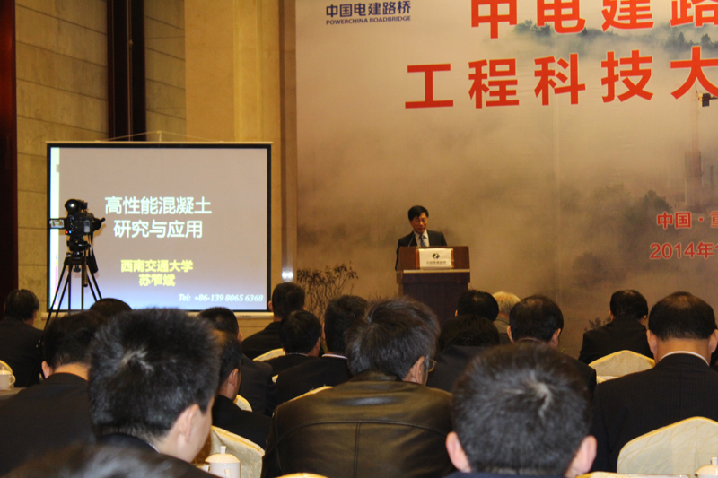 四川特科新型建材有限公司董事長蘇笮斌在中電建路橋集團(tuán)科技大會上發(fā)表題目為高性能耐久性混凝土的主旨演講