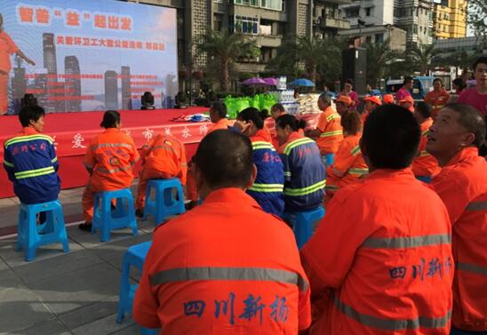 如果說,每個(gè)城市的生活,就像一首宏偉的交響曲,那么,環(huán)衛(wèi)工人就是那樂譜上的音符。盡管音符是那樣的微小、那樣的普通,可他們卻在自己特定的位置上發(fā)出了悅耳的音響。如果說,我們的祖國就像一個(gè)群星燦爛的世界,那么,環(huán)衛(wèi)工人就是那閃爍的星星。盡管人們不知道他們的名字,可是他們卻在自己的生活軌道上發(fā)出一束束光和熱,去無私地照耀別人。