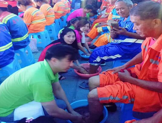 在為環(huán)衛(wèi)工人洗腳專場(chǎng)活動(dòng)中,一位環(huán)衛(wèi)工人她用她充滿褶皺的手摸著鐵科公司總經(jīng)理蘇琳女士的頭說“我女兒都沒有對(duì)我這么好”,蘇琳女士笑著說“沒事兒,我就是你女兒呀。”低下頭繼續(xù)為環(huán)衛(wèi)阿姨洗腳,然而眼淚一滴一滴的往下掉,像斷了線的珍珠一般散落無遺……