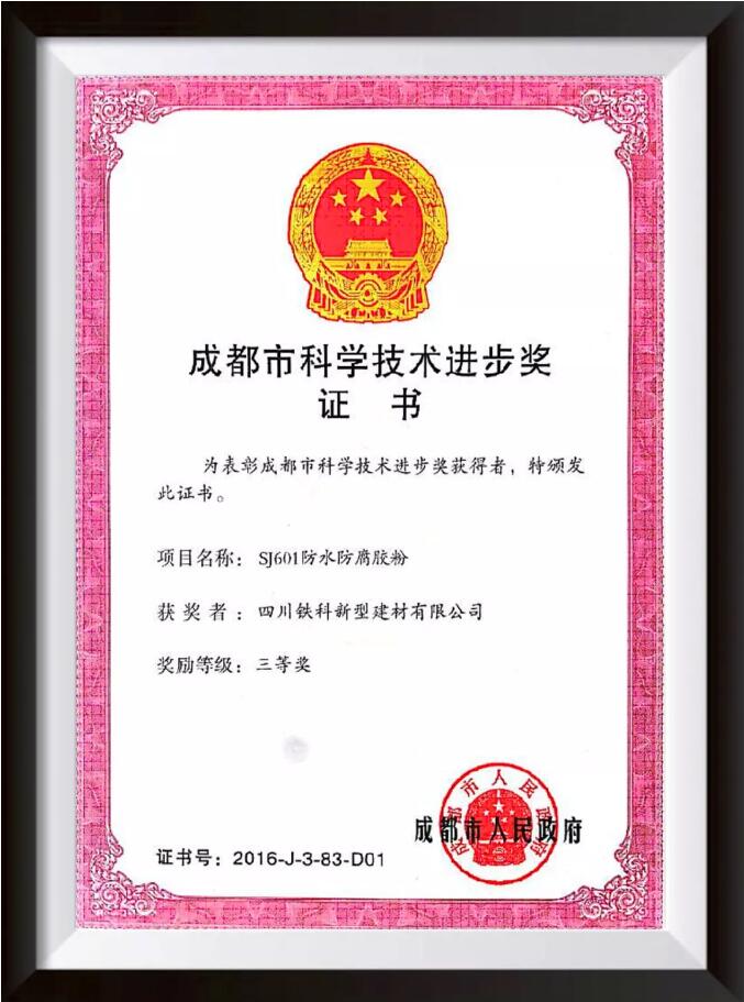 我公司自主研發(fā)生產(chǎn)的SJ601防水防腐膠粉采用聚合物共混物、納米填充物和混凝土功能性改性劑復配而成,具有優(yōu)良防水、防腐、抗?jié)B、抗裂、耐候、耐久、抗凍、憎水防潮、抗靜電、抗污染性能,且輕質(zhì)、高效、清潔環(huán)保、安全衛(wèi)生、經(jīng)久耐用、制備方法新穎、制備工藝復雜、材料性能優(yōu)異的新型粉末狀防水材料。該產(chǎn)品于2017年4月通過四川省科技成果鑒定。