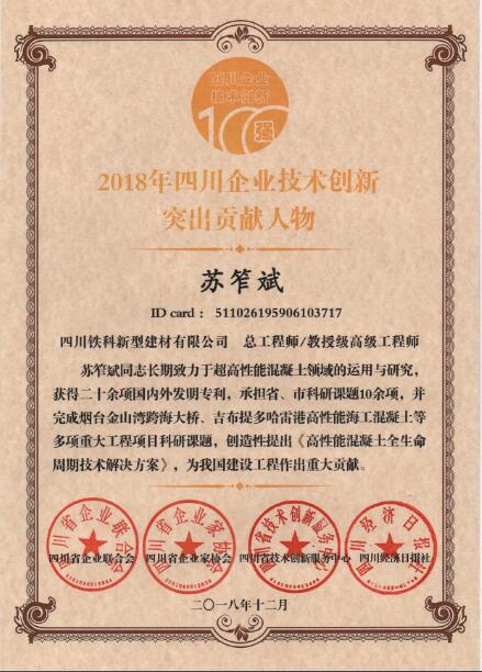 董事長蘇笮斌先生榮獲“四川企業(yè)技術(shù)創(chuàng)新突出貢獻人物 |