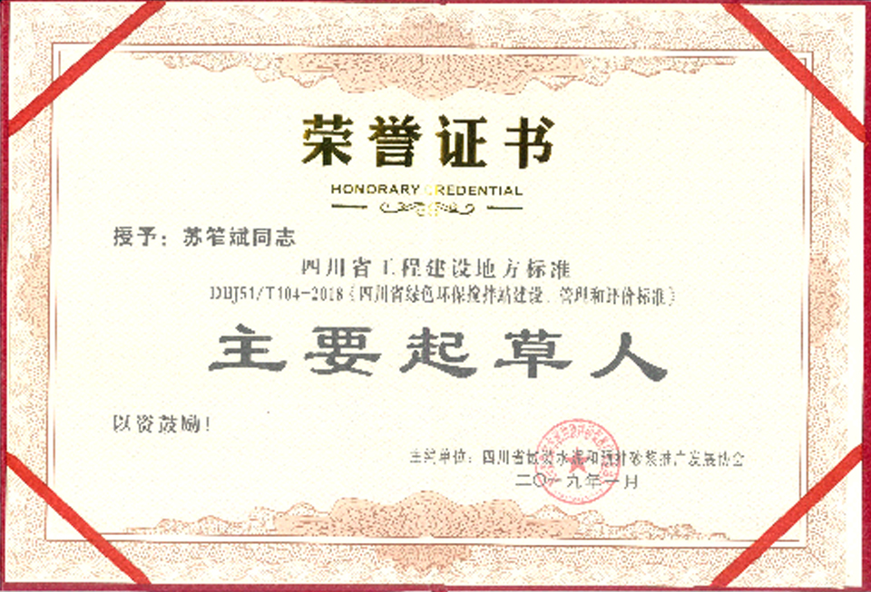 董事長蘇笮斌先生為該標準主要起草人