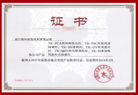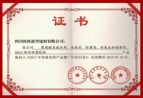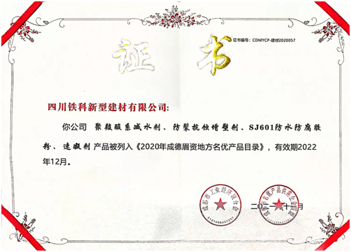 為實(shí)現(xiàn)工業(yè)強(qiáng)基戰(zhàn)略,推動(dòng)成德眉資(成都、德陽、眉山、資陽)地方名優(yōu)產(chǎn)品集群強(qiáng)勢(shì)發(fā)展,加大名優(yōu)產(chǎn)品推廣應(yīng)用力度,增強(qiáng)企業(yè)的綜合競(jìng)爭(zhēng)力,進(jìn)一步提升地方名優(yōu)產(chǎn)品的知名度、美譽(yù)度和市場(chǎng)占有率,推動(dòng)產(chǎn)業(yè)發(fā)展、科技創(chuàng)新和產(chǎn)品質(zhì)量的全面提高,經(jīng)成都市經(jīng)濟(jì)和信息化局批準(zhǔn),《2020年成德眉資地方名優(yōu)產(chǎn)品目錄》于11月11日公開發(fā)布,我司生產(chǎn)的聚羧酸系減水劑、防裂抗蝕增塑劑、SJ601防水防腐膠粉及速凝劑產(chǎn)品榮耀上榜。