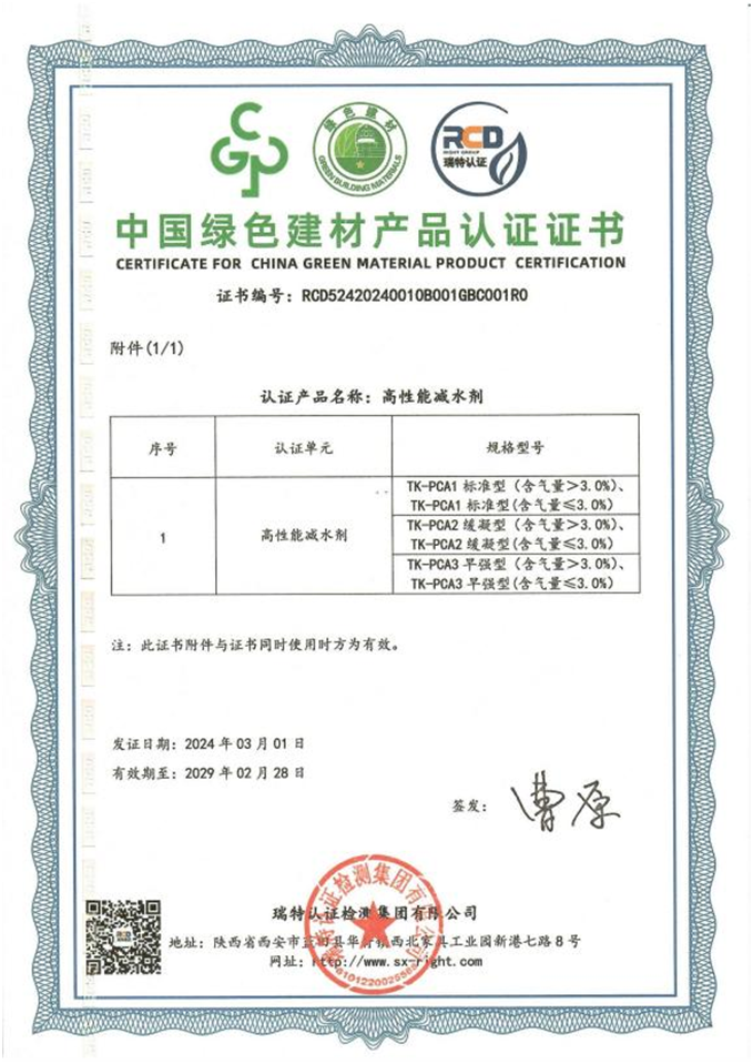 四川鐵科堅持以科技創(chuàng)新推動建筑行業(yè)向綠色低碳高質(zhì)效發(fā)展,此次綠色建材產(chǎn)品認證的取得,更進一步證明鐵科公司產(chǎn)品和技術在保證項目施工性能、力學性能的同時,能有效降低高能耗、高污染水泥等膠材用量,降低材料成本、改善施工環(huán)境,全面提升混凝土構(gòu)筑物的抗?jié)B、抗裂、抗凍、抗沖磨、抗碳化、抗腐蝕、抗彎拉、抗疲勞等耐久性能,使構(gòu)筑物全生命周期質(zhì)效得到充分保證。