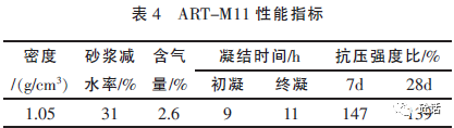 聚羧酸減水劑ART-M11來自江蘇某新材料股份有限公司,其性能指標(biāo)見表4。