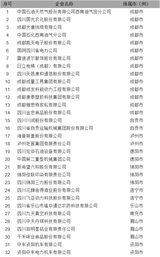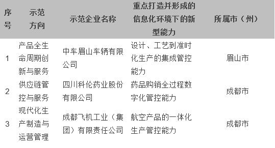 2017年四川省兩化融合管理體系貫標(biāo)試點(diǎn)企業(yè)名單